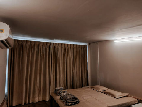 The Clubhouse has 5 AC residential rooms with attached bathrooms. Room 2 is the biggest with two double beds.